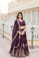 luxurious Wine Lehenga Set, crafted from Digital Printed Russian Silk and adorned with intricate sequins embroidery. This stunning ensemble blends traditional elegance with contemporary flair, perfect for making a statement at any special occasion.