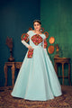 Drape yourself in elegance and charm with this pista green semi-stitched gown, designed from luxurious georgette fabric. Adorned with intricate embroidered work featuring real mirrors and pearls, this gown is a statement of sophistication. The addition of a waist belt enhances the silhouette, offering a perfect blend of tradition and modernity. This semi-stitched gown is customizable from size 34 to 46, making it an ideal pick for festive occasions, weddings, and celebrations.